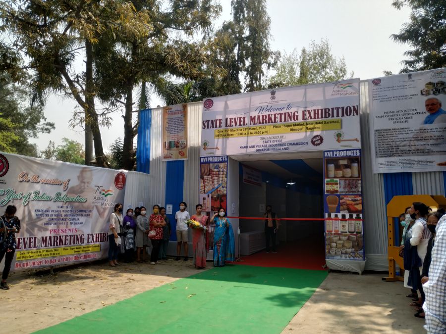 The state level marketing exhibition is being organised by the State Office, Khadi and Village Industries Commission (KVIC), Dimapur to encourage the beneficiaries or entrepreneurs who have availed loans from various schemes of KVIC by providing them platforms to promote and sell their products.