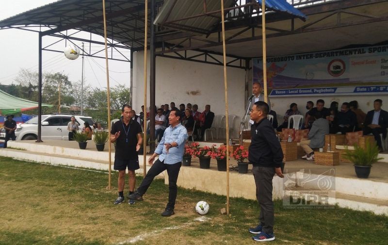 MLA Y Vikheho Swu launches the first Pughoboto inter-departmental sports meet at the local ground Pughoboto on April 7. (DIPR Photo)