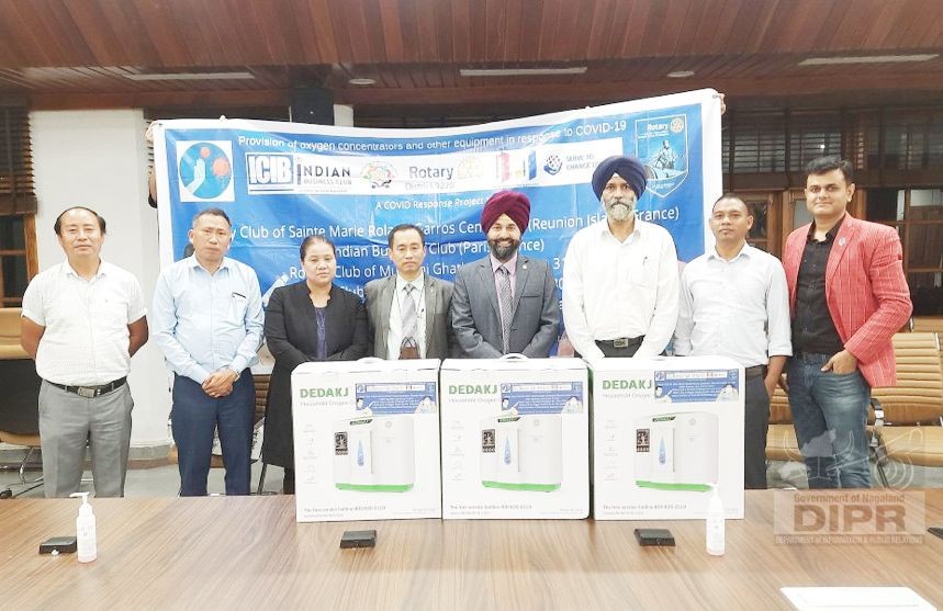 According to a DIPR report, as a COVID Response Project by Rotary Club of Sainte Marie Garros Centenaire (Reunion Island France), Indian Business Club(Paris, France), Rotary Club of Mumbai Ghatkopar (RI Dist 3141), Rotary Club of Nagpur South East(RI Dist 3030), Indian Chamber of International Business(France) along with the host club, Rotary Club of Kohima (RI Dist 3240) donated three sets of oxygen concentrators in the presence of Amardeep S Bhatia; KD Vizo, ITS; Manpreet Singh Nagi; Rajan R Thaokar; Kohima Rotary Club President, Rtn Kezhokhoto Savi; First Lady and PP Rtn Neisatuo Mero.