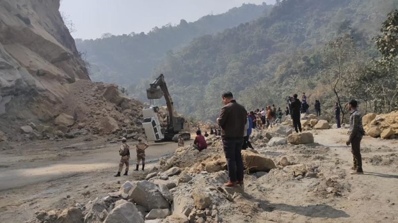 The rockslide occurred around 9:30 am, approximately 1.5km from the Chümoukedima police check post towards Kukidolong.