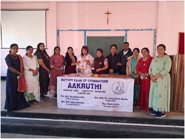 The team led by President, Vidya Ramesh and Project Chair, Dr Leena Martin from the Martin Group also felicitated the President, Rotary Club Kohima, Dr Rosemary Dzuvichu and Treasurer Dr Ketoulelhou Vizo with traditional gifts from Coimbatore.