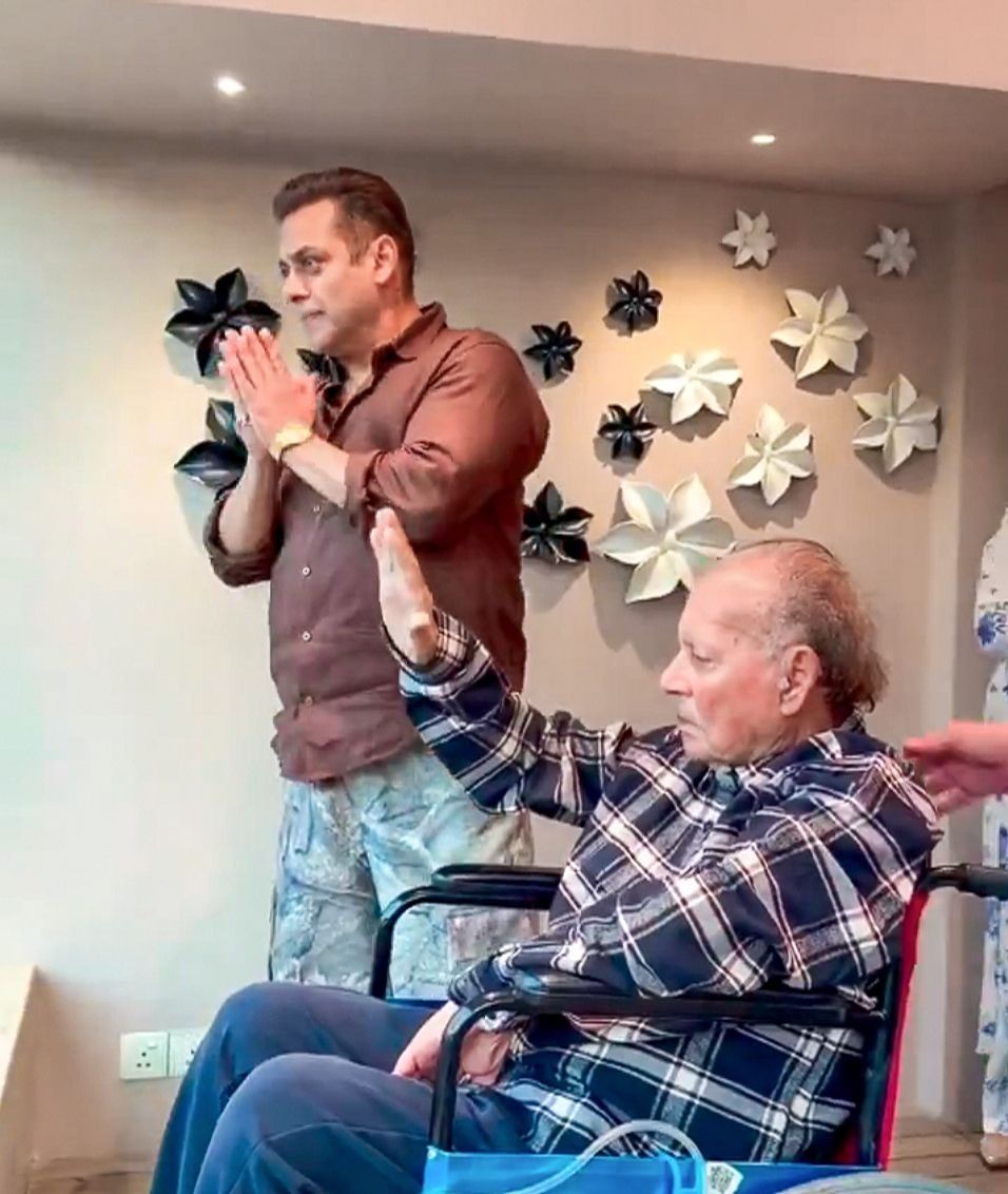 In the video dropped by the 'Bajrangi Bhaijaan' actor on his IG, he was seen bringing his father on a wheelchair. The father and son duo were later seen waving at the people gathered outside their residence.