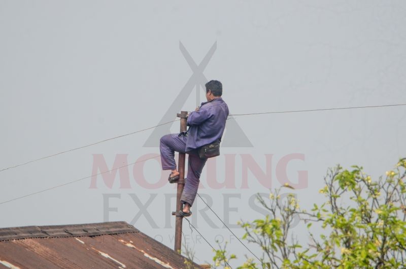 Scaling electric poles for line repairs is a routine task for electricians, also known as lineman, of the Department of Power, Nagaland. A dangerous job that claims lives, this lot of under-paid yet essential workers often respond to emergency calls without any personal safety gear. Seen in the picture is a lineman fixing a powerline somewhere in Tuensang town. (Morung Photo by Moses Hongang Chang)