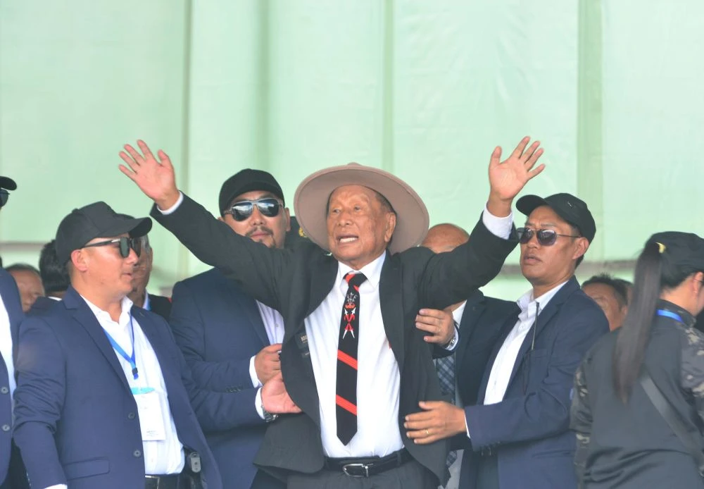 The 'civic reception' programme at Senapati Public Ground was moderated by former UNC president L. Adani. Scores of NSCN-IM leaders, including Deputy General Secretary VS Atem, top leaders such as RH. Raising, Army Chief Anthony Shimray, former UNC presidents, Naga student leaders, representatives from the Global Naga Forum (GNF) and NPMHR, Naga Women Union (NWU) leaders, Naga tribe presidents, and non-Naga community leaders shared the dais with Th. Muivah. On behalf of their respective tribes, each Naga tribe president under the UNC presented gifts to Th. Muivah.