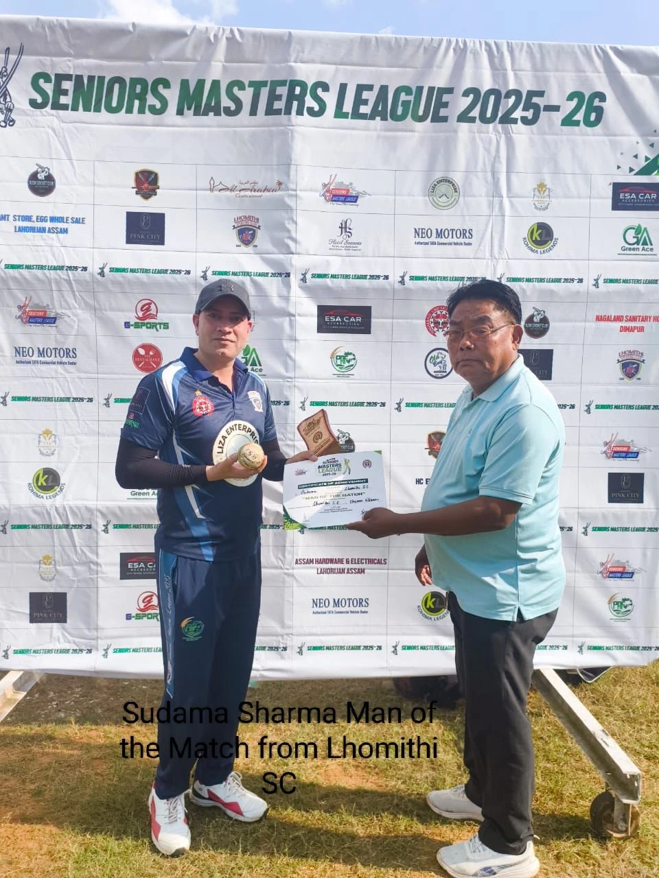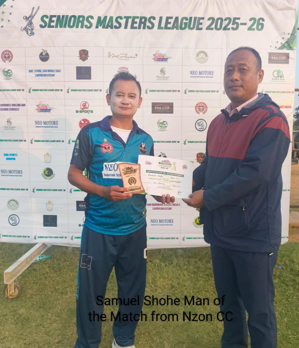 Electing to bat first, Lhomithi SC posted 128/9 in 20 overs, with notable contributions from Hino Chishi (41 off 31) and Toni Achumi (31 off 26). Chumou Veterans could manage only 90, with Alongba’s 20 off 33 being the lone resistance. Sudama’s exceptional bowling performance, a 5-wicket haul for just 17 runs, secured the win and earned him Man of the Match.