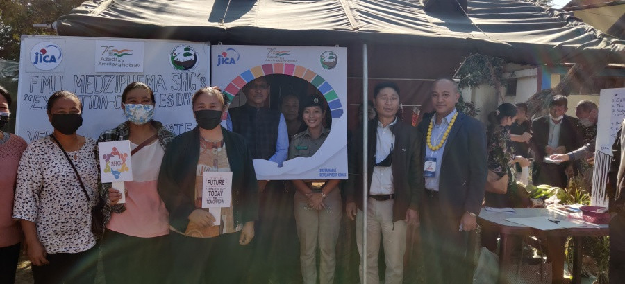 Medziphema, December 2 (MExN): Commemorating the India’s 75th year of Independence (Azadi Ka Amrit Mahotsav), an 'Exhibition-Cum-Sales Day' by Medziphema Village Women Self Help Groups was held on November 29 and 30. The Mezhiphema Field Management Unit (FMU) and Joint Forest Management Committee (JFMC) under Nagaland Forest Management Project (NFMP) JICA & FDA organised the event at Medziphema Local ground.