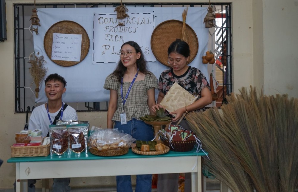 The exhibition featured stalls from the Departments of Botany, Biotechnology, and Zoology, displaying student-led projects and products combining science, culture, and sustainability.