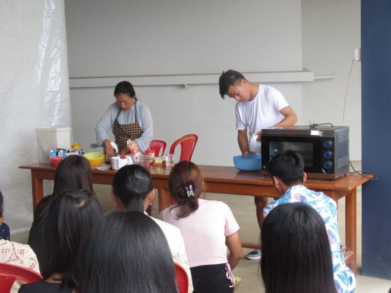 Flower grafting and baking lesson underway at the skill-based workshop orgnised as a part of the ongoing 12th ABC Youth Conference at Artang Baptist Church (ABC) Mokokchung on July 9. (Morung Photo)