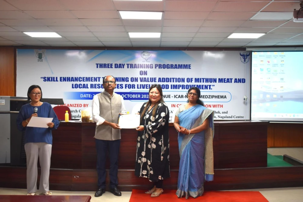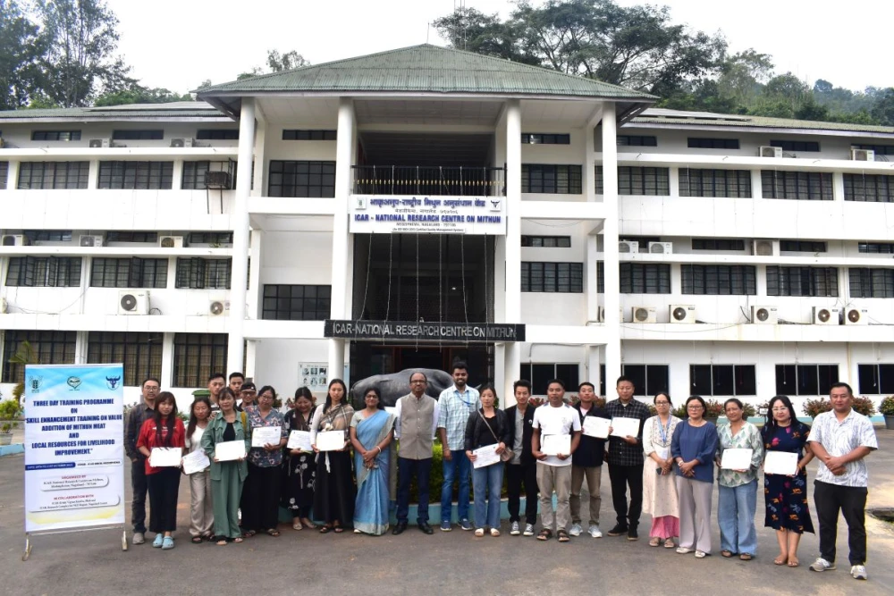 Medziphema, November 3 (MExN): A three-day training programme on “Skill Enhancement Training on Value Addition of Mithun Meat and Local Resources for Livelihood Improvement” concluded at ICAR–NRC on Mithun, Medziphema on October 31.