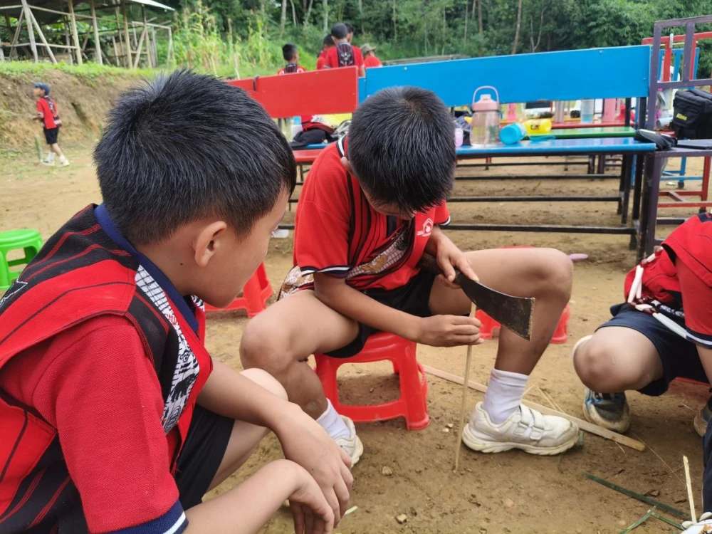 The second session transitioned into an interactive showcase of traditional skills and indigenous games. Students participated in traditional practices such as husk sieving, yarn spinning, bamboo strip making, and catapult crafting. It continued with traditional games competitions, including bamboo pole climbing, bamboo stilt walking, cock fighting, and tug of war.