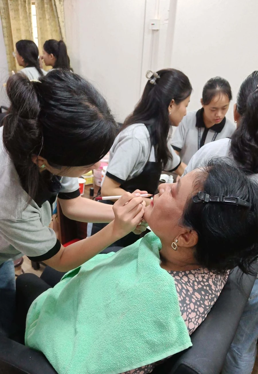 Students enrolled in the college’s two-month beauty crash course demonstrated various techniques, including makeup application, facial care, hairstyling, waxing, and threading.