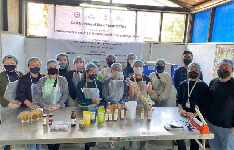 Dimapur, February 14 (MExN): The State Agricultural Management and Extension Training Institute (SAMETI), Medziphema in association with National Institute of Agricultural Extension Management (MANAGE), Hyderabad organised a Skill Training of Rural Youth programme on post-harvest processing and packaging of fruits and vegetables from the February 7 to 12 to impart employable skills to unemployed rural youths of the age group 18 - 40 years.