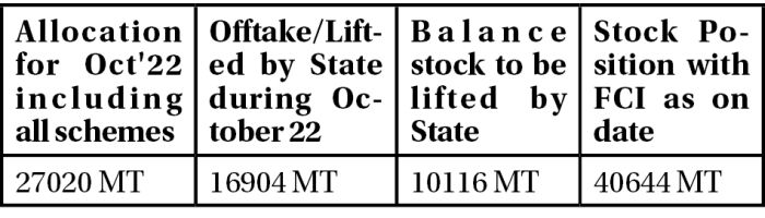 In a press release it stated that as on October 22, 2022, approximately 40644 MT of rice are available in the central pool which is well above the buffer norms/operational requirement.