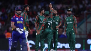 Bangladesh were 57/5 at drinks, needing a huge few overs to work back into the contest. Post drinks, off-spinner Rohit Paudel produced a sharp-turning ball to trap the other danger man, Shakib Al Hasan (17 off 22), out lbw.