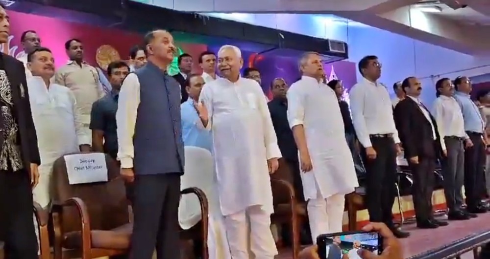 CM Nitish, during the inauguration of the Sepak Takraw World Cup 2025 in Patna on Thursday evening, was seen talking, laughing, and folding his hands during the national anthem.