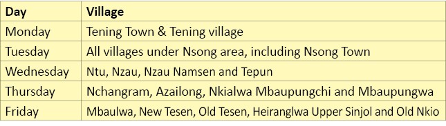 The house also resolved to enforce roster system for village wise staggered visits to banks to ensure that there is no overcrowding in the bank vicinity. (See table)