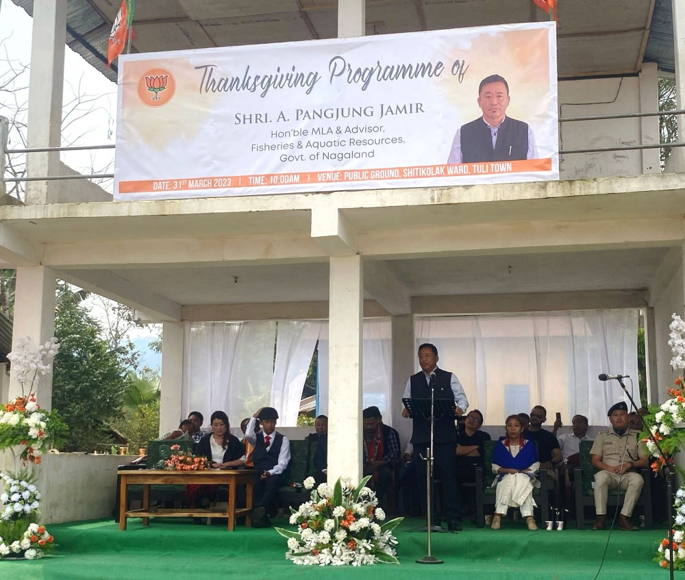 Mokokchung, March 31 (MExN): To mark the win of election from 21 Tuli AC, a thanksgiving programme for new MLA and Advisor for Fisheries & Aquatic Resources, A Pangjung Jamir was held at public ground, Shitikolak Ward, Tuli on March 31.