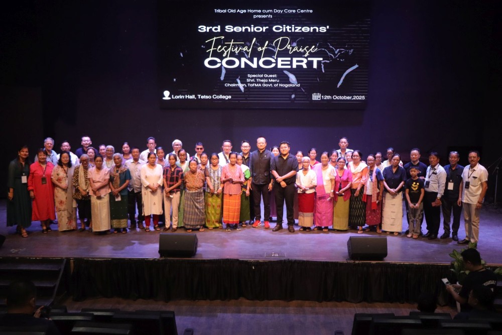 SOVIMA, OCTOBER 12 (MExN): The Tribal Old Age Home cum Day Care Centre (TOAHDCC) celebrated the International Day of Older Persons on Sunday by organising its Senior Citizens’ 3rd Festival of Praise Concert at Lorin Hall, Tetso College, Sovima, under the theme “Revitalize.” Theja Meru, Chairman of TaFMA, Government of Nagaland, was the guest speaker.