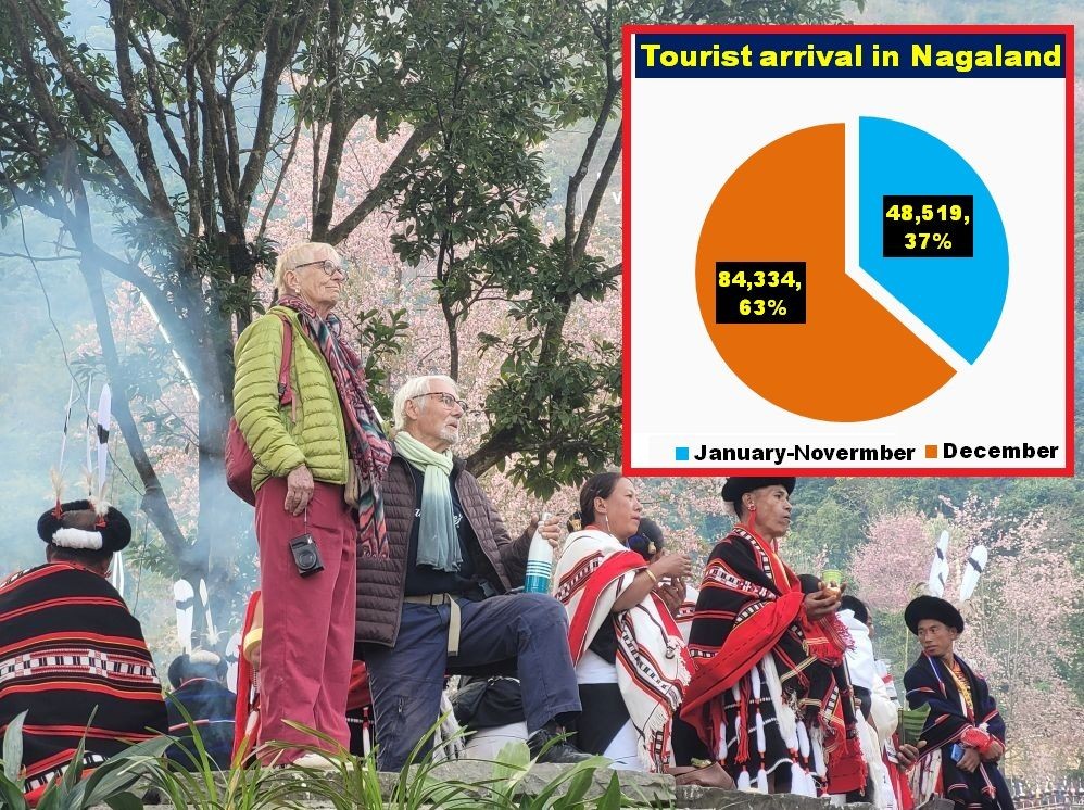Overall, the tourist arrivals between January and November stood at 48,519 (36.5%), while in December, boosted by the Hornbill Festival, recorded 84,334 visitors, accounting for about 63.5% of the annual flow to the State.