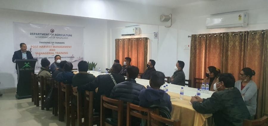 Kohima, January 23 (MExN): Mission Organic Value Chain Development- North East Region phase-III under the supervision of the Department of Agriculture, Nagaland and the Service provider, Green Caravan held a Training of farmers on Post Harvest Management and Managerial Training of FPCs, BoDs & CEOs, Book keeping and Accounting at Hotel Saramati, Dimapur on January 18.