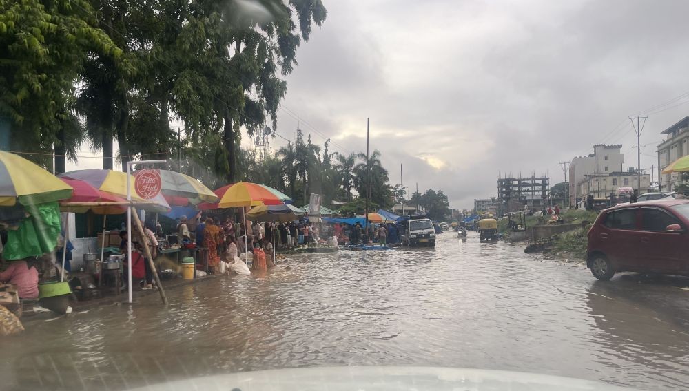 A section of the popular Wednesday weekly market in Supermarket Dimapur is seen inundated following heavy rainfall on July 26. The India Meteorological Department (IMD) also forecasted on Wednesday evening that there is a very high likelihood of fairly widespread rainfall over the North-East India, including Nagaland, from July 26-30. The national weather agency also predicted thunderstorms with lightning and heavy rainfall in isolated places over the region during the same period. (Morung Photo)