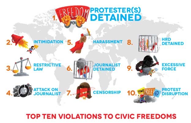 Over the past year, according to the latest CIVICUS Monitor, civil society across the world has faced a variety of legal and extra-legal restrictions as captured in the Monitor.