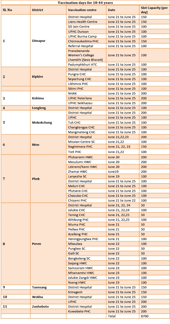 Kohima, June 19 (MExN): The Directorate of Health and Family Welfare Nagaland has informed that the CoWIN portal will open from 9:00am onwards on June 20 for booking slots for vaccination appointments for the 18-44 years age group.