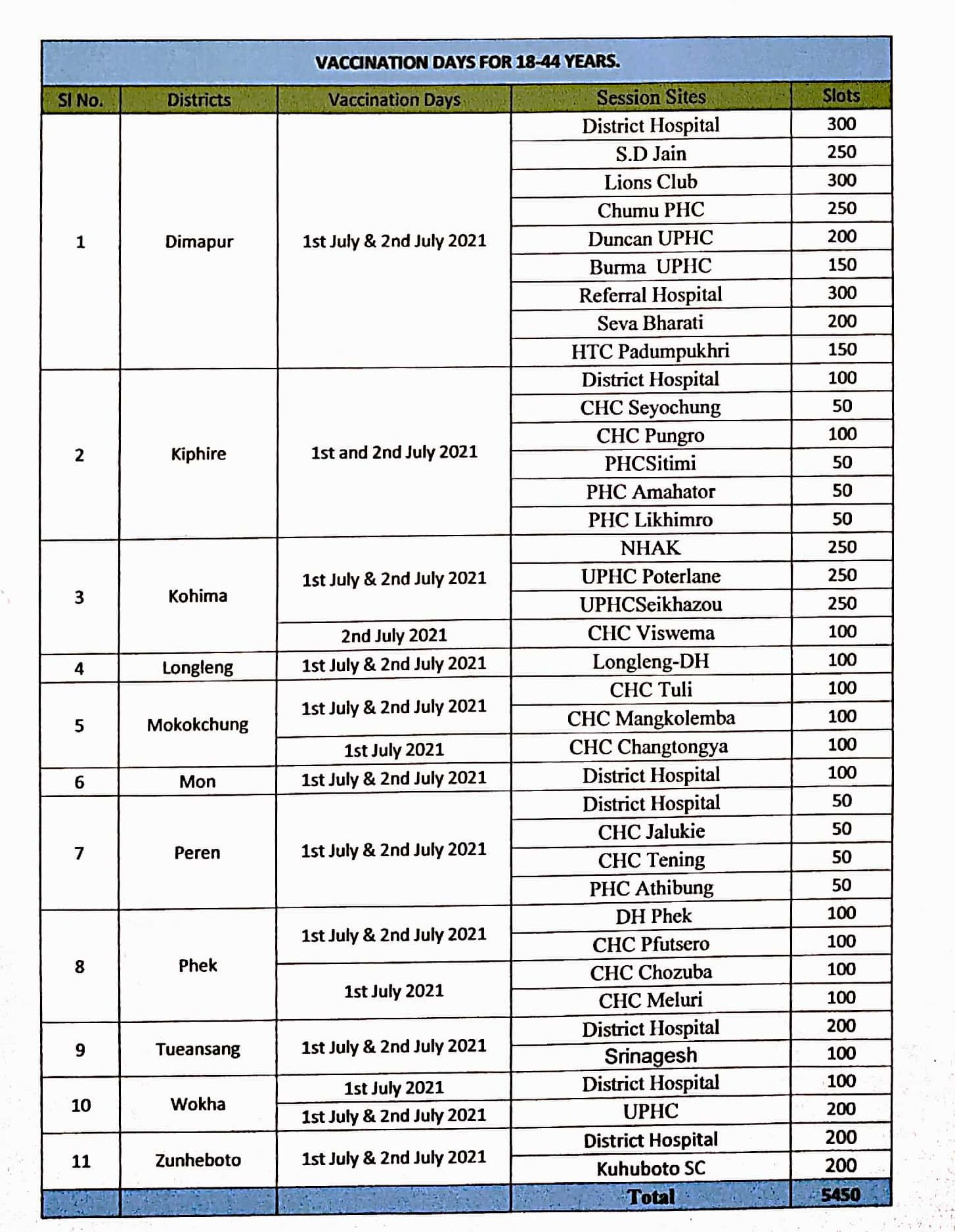 Kohima, June 29 (MExN): The Directorate of Health and Family Welfare Nagaland has informed that the CoWIN portal will open from 9:00 am onwards on June 30 for booking slots for vaccination appointments for the 18-44 years age group. Slots will be open for vaccination days scheduled on July 1 and 2, it said.