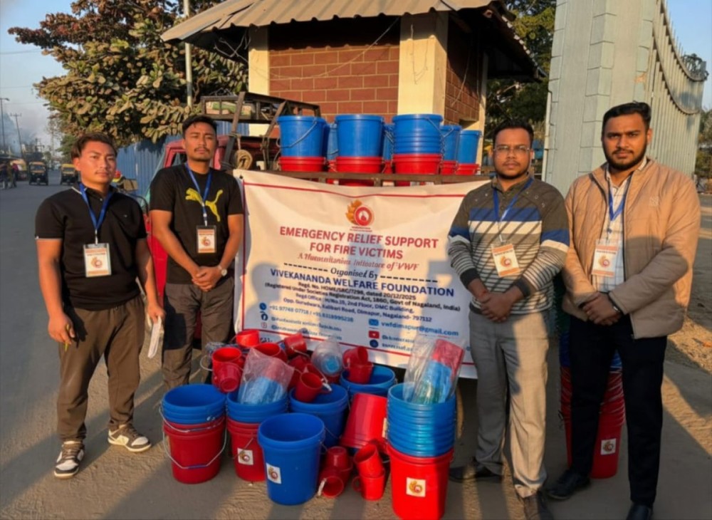 DIMAPUR, DECEMBER 17 (MExN): The Vivekananda Welfare Foundation (VWF), Dimapur, on Wednesday extended humanitarian aid to families affected by a massive fire that broke out on December 14 at Burma Camp, East Block, near North East Christian University, Dimapur.