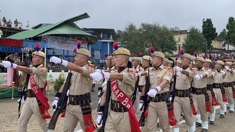 A Police contingent take part in the march past during the Independence Day celebrations in Wokha on August 15. (Morung Photo)