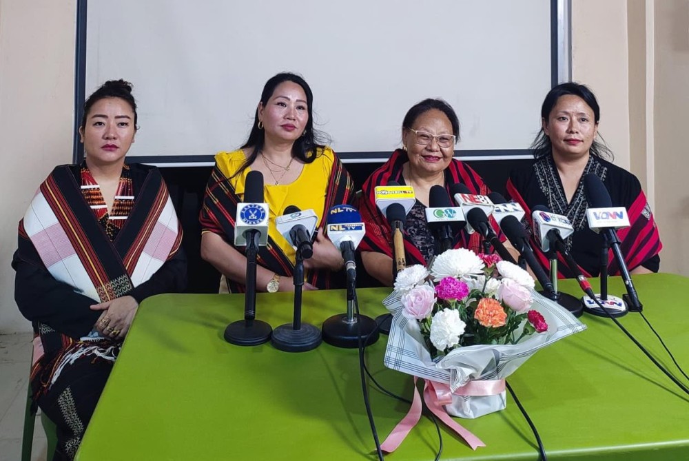 Tsachola Rothrong (second from right), President, Nagaland state BJP Mahila Morcha, at the press conference in Dimapur on April 13. (Morung Photo)